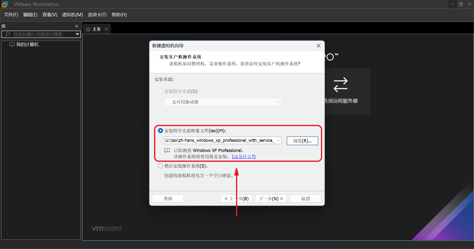 第四步,选择“安装程序光盘映像文件(iso)(M)”,选择好你的镜像文件,然后选择下一步: