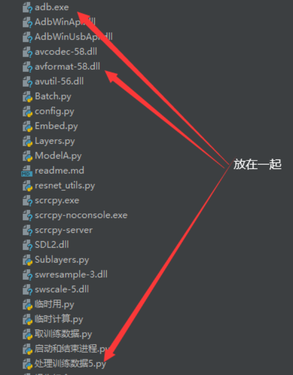 5、需要下载scrcpy 的windows版本。把所有文件解压到项目根目录即可(这是我的笨办法) 。