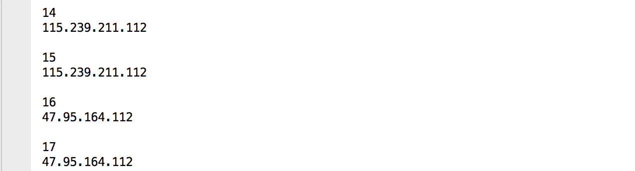 public class HostProcessor implements Runnable {private int count = 1;/*** 每秒解析1次 www.baidu.com 的 IP*/@Overridepublic void run() {while (true) {System.out.println(count);printIp("www.baidu.com");try {Thread.sleep(1000);} catch (InterruptedException e) {e.printStackTrace();}count = count + 1;System.out.print("\r\n");}}/*** 解析并打印 IP*/private void printIp(String host) {InetAddress address = null;try {address = Inet4Address.getByName(host);} catch (UnknownHostException e) {e.printStackTrace();}if (address == null) {return;}System.out.println(address.getHostAddress());System.out.println(address.getHostName());}public static void main(String[] args) {Thread thread = new Thread(new HostProcessor());thread.start();}