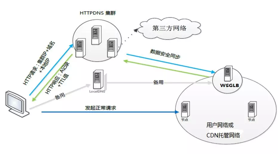 - 5、若客户端访问 HTTP DNS 集群失败,可自动切换为传统方式通过运营商 Local DNS 进行解析查询