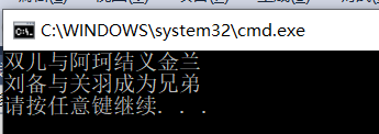public:STU(string name, int age) { _name = name; _age = age; };const string getName() { return _name; };const int getAge() { return _age; };void show() { cout << "名字:" << _name << "年龄:" << _age<<endl; };void operator << (string strName) {cout << _name << "与" << strName << "结义金兰" << endl;}void operator << (STU p1){cout << _name << "与" << p1.getName() << "成为兄弟" << endl;}