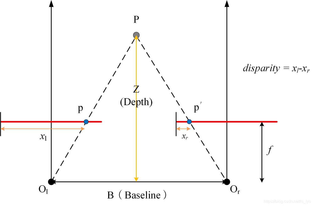 这可再熟悉不过了, D D D是深度, B B B是基线, f f f是焦距(像素单位), d d d是视差。咱们一分为二看这个公式,右边分母部分是像素视差值,和算法相关;分子部分是系统硬件参数,和硬件相关。