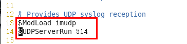 其输出应该像下面这种情况,rsyslog后台进程在UDP的端口上进行监听。