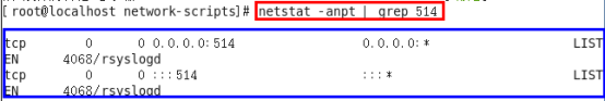 4、通过过netstat命令来验证rsyslog后台进程是否运行。