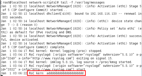 tcp6 0 0 :::514 :::* LISTEN 1891/rsyslogd5、建立所有的配置后,就可以开启服务和通过tail -f命令来观察在rsyslog日志服务器上的日志文件。