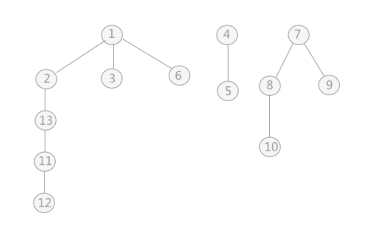 3)在生成森林函数DFSForest()中,如果仍然存在未访问节点,则说明是非连通图将该结点接入到根节点的兄弟结点上,继续深度优先建立生成树,具体见DFSForest()函数