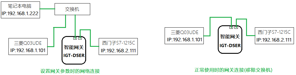 系统的网络结构图,网关支持热插拔自恢复,以下是设置时和运行时的网络连接关系: