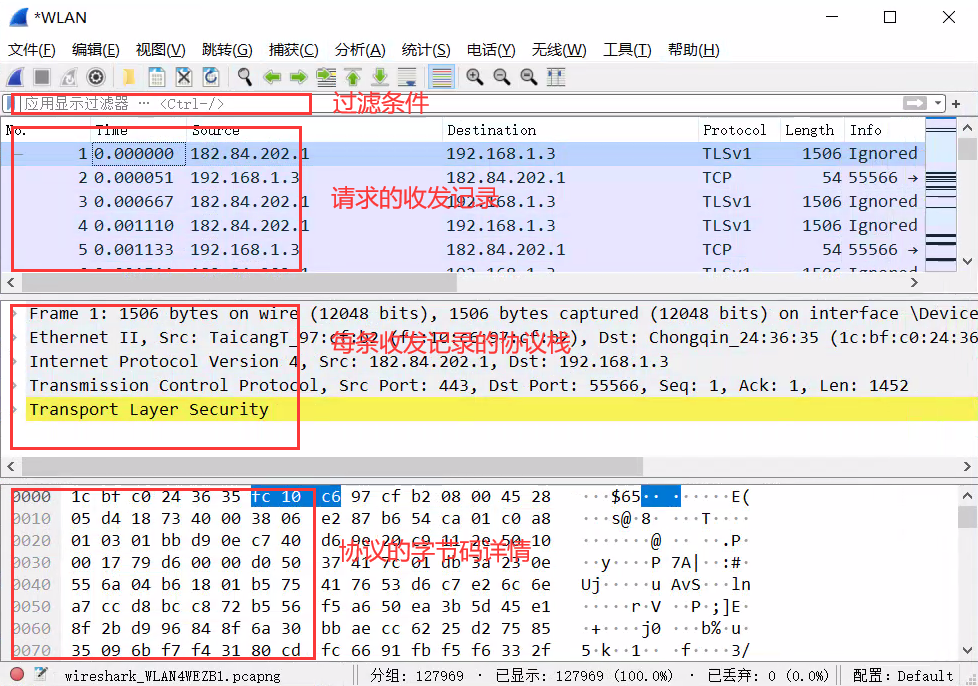 ip.addr == 101.73.81.61:过滤地址(不分发起方和回应方)