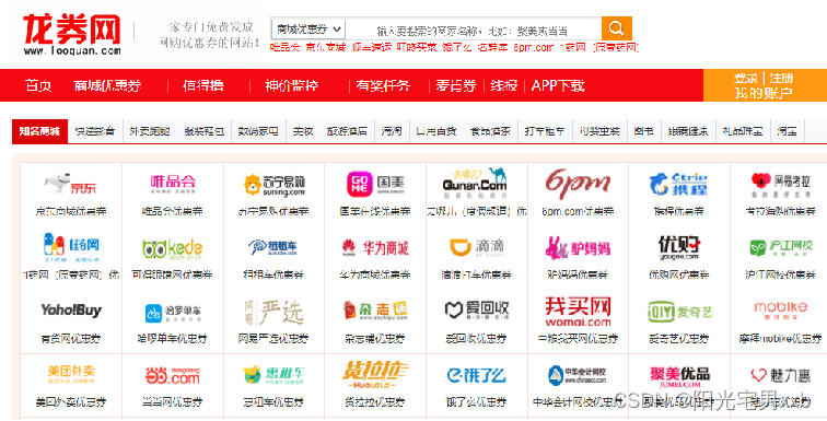 龙券网,是一个提供搜索各大电商平台优惠券信息的网站,其原理也是通过爬虫将各大电商平台上的商品优惠信息抓取过来。