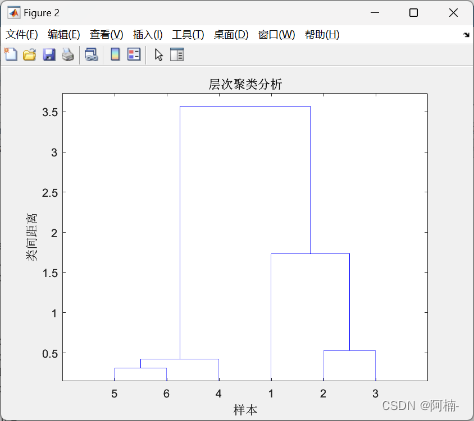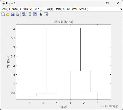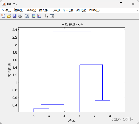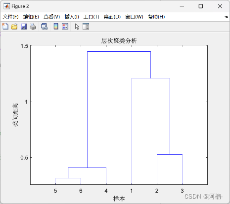 pdist(): 这个函数是为了进行数据之间求距离的,输入为数组及以何种方式求距离,方式主要有欧式距离、马氏距离、曼哈顿距离、切比雪夫距离、绝对值距离,输出为每两个数据之间的距离。这一步是为了聚类做准备。本文选择的输入方式为Y = pdist(X,Distance)。