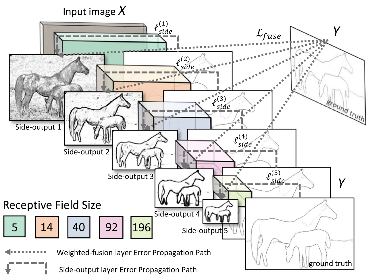 Holistically-Nested Edge Detection(简称 HED)由 Xie 等人提出。作为图像边缘检测领域一种比较经典的网络,HED 网络的出现对之后出现的各种图像边缘检测算法都有着启发式的贡献,解决了在计算机视觉领域存在的两个重要问题: