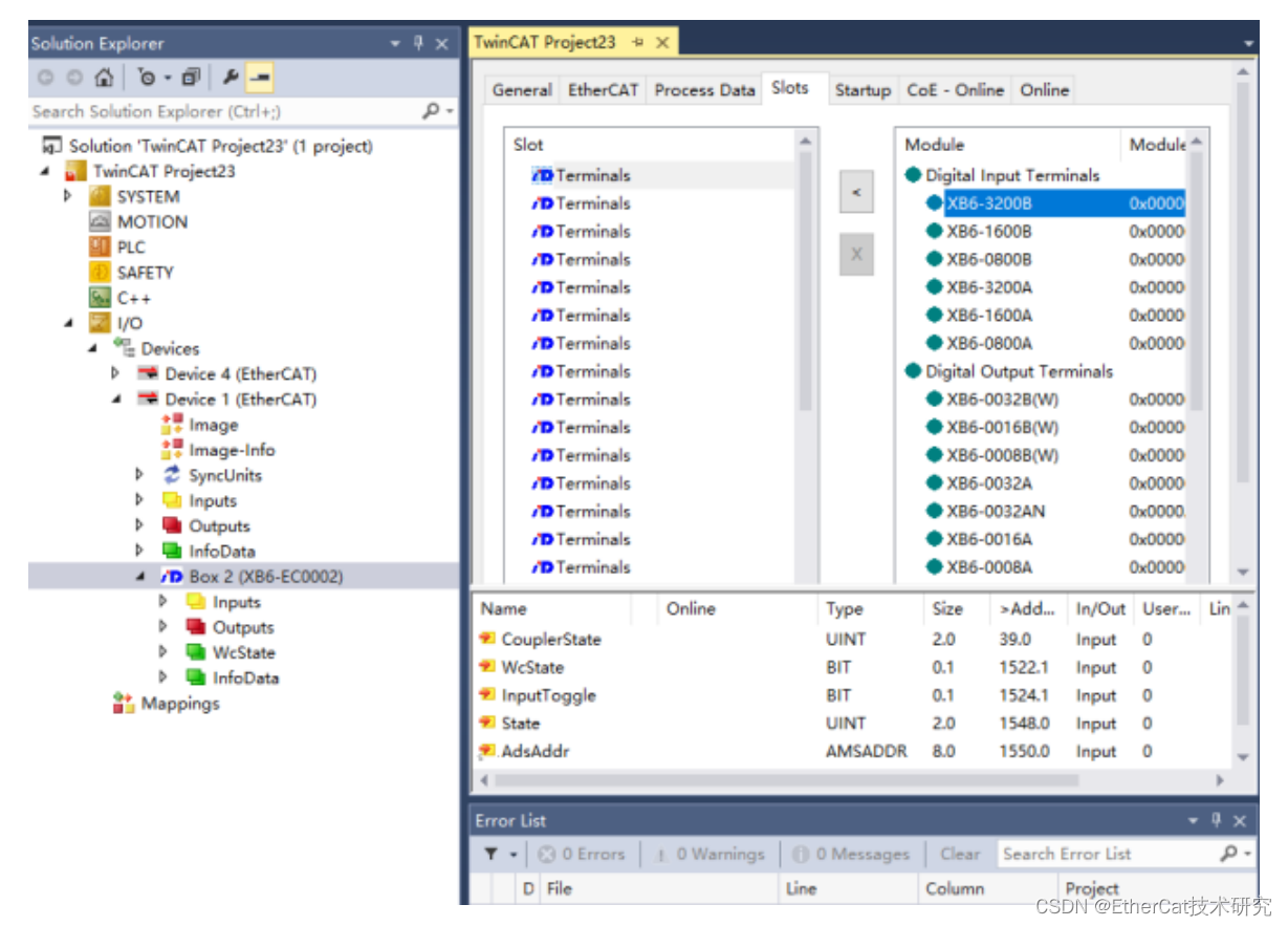 根据设备协议描述,每个slot对应一组PDO,实现周期数据的交换,还增加了对应的配置空间,实现对不同模块的数据配置