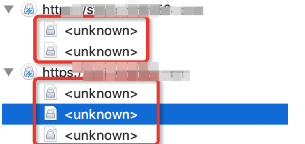 charles抓包会出现,请求前都加了锁,具体地址为<unknown>的情况。