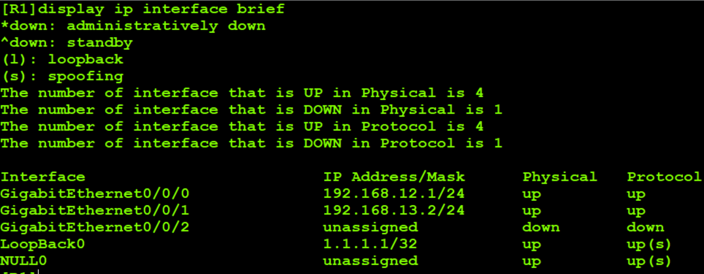 [R1-GigabitEthernet0/0/0]ip address 192.168.12.1 24