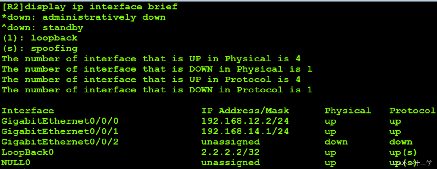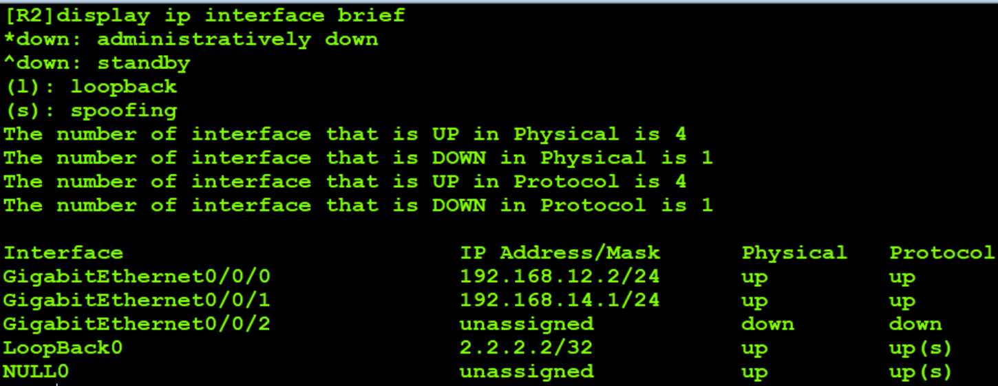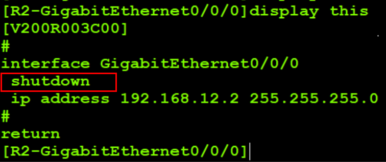 [R2-GigabitEthernet0/0/0]undo shutdown