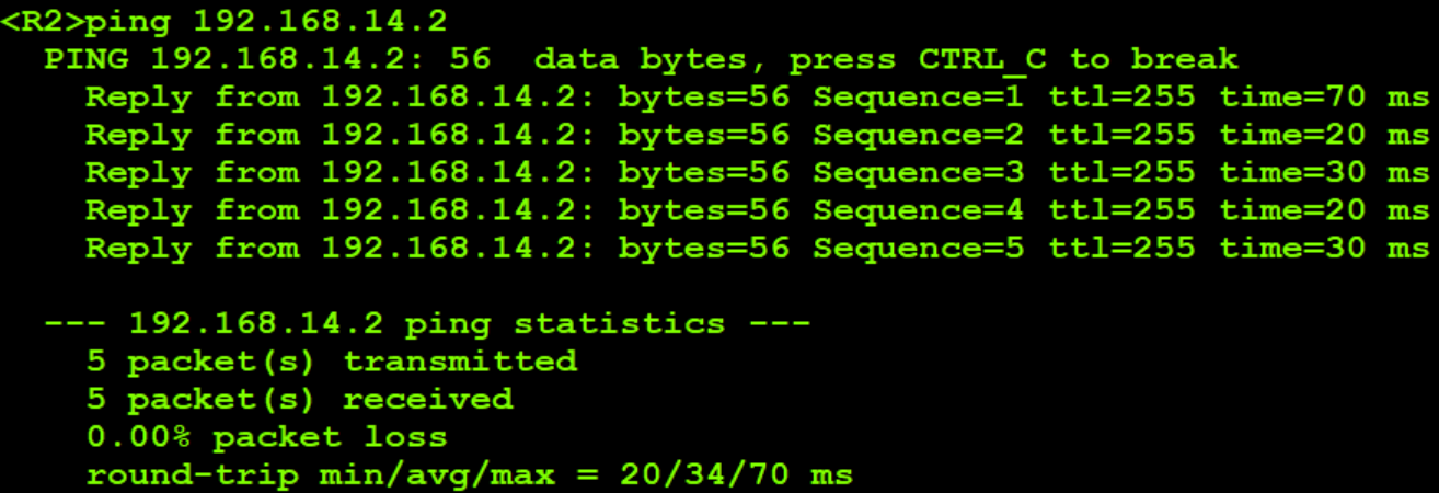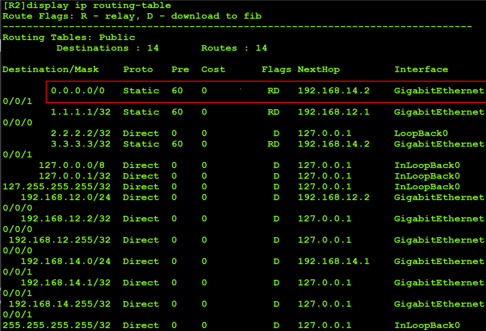 [R2]ip route-static 0.0.0.0 0 192.168.14.2