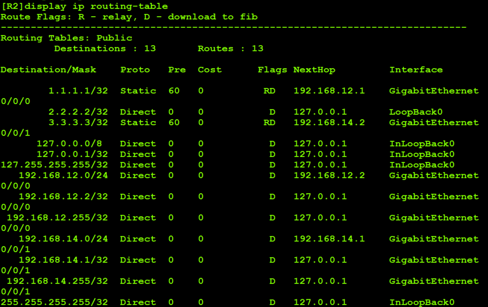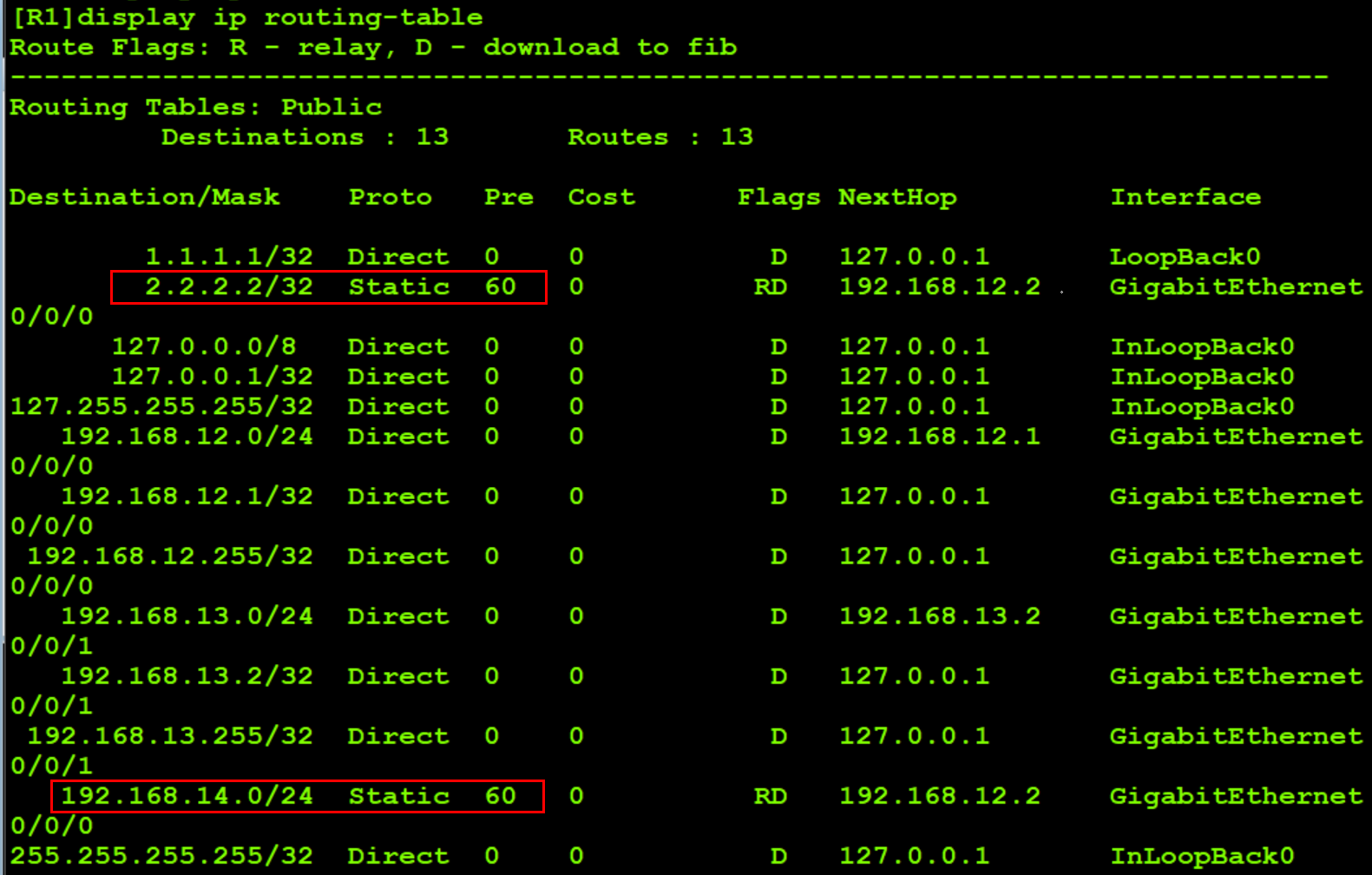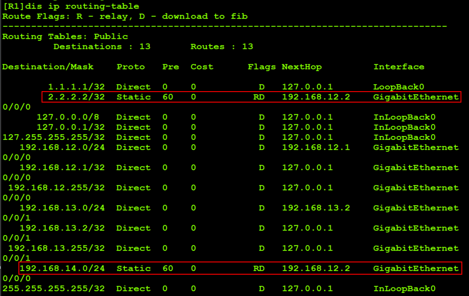 [R1]ip route-static 2.2.2.2 32 192.168.12.2