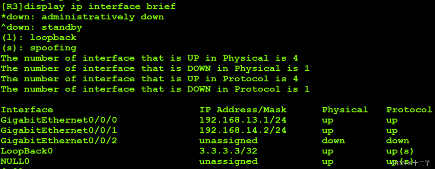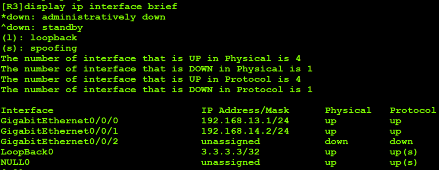 [R1-GigabitEthernet0/0/1]ip address 192.168.13.2 24