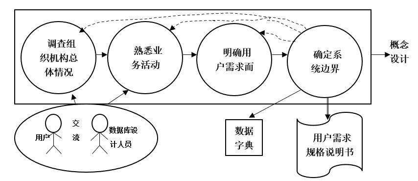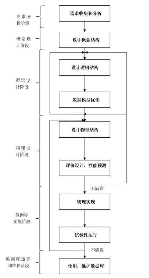 设计一个完善的数据库应用系统往往是上述 6 个阶段的不断反复。这个设计步骤既是数据库设计的过程,也包括了数据库应用系统的设计过程。把数据库的设计和对数据库中数据处理的设计紧密结合起来,将这两个方面的需求分析、抽象、设计、实现在各个阶段同时进行,相互参照,相互补充,以完善两方面的设计。