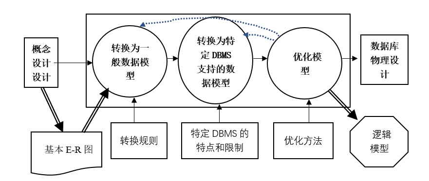 (3)逻辑设计阶段:将概念结构转换成某个 DBMS 所支持的数据模型,并对其进行优化。