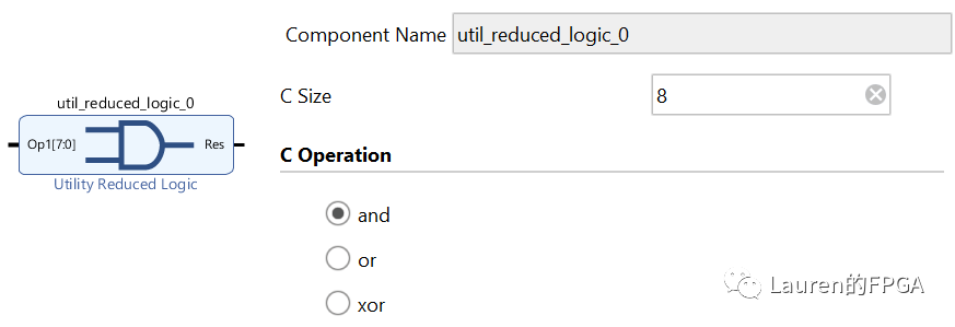 这个IP实现的是位缩减功能,比如,对于8bit数据,其位缩减与就是各位相与,如下图所示,可支持与、或、异或。