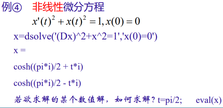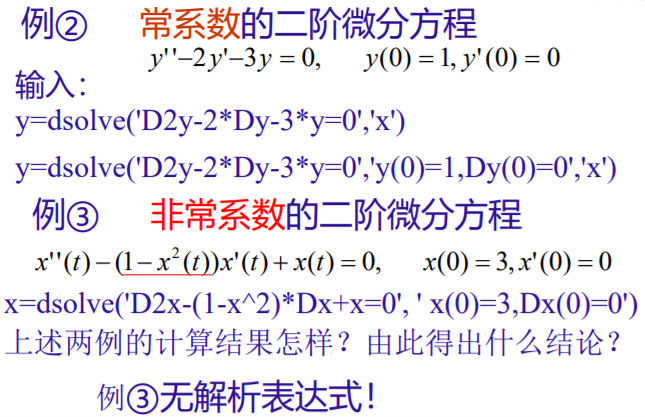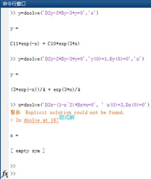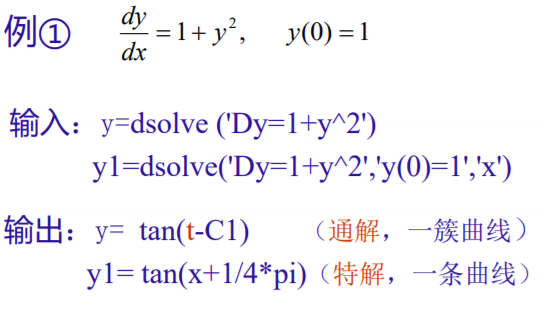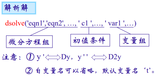 没有初始条件,求出的解 一般是 通解(Dy)。 指定变量为x,求出的方程 自变量为x,否则为t。