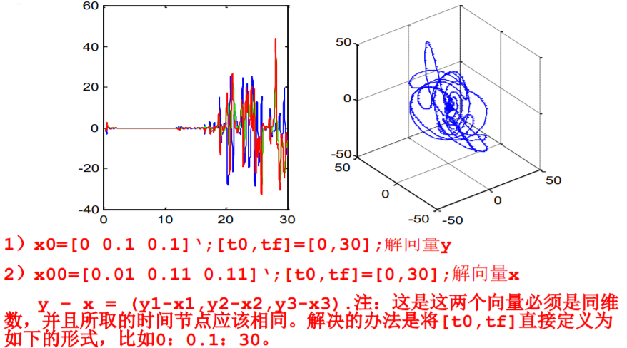注:这是这两个向量必须是同维数, 并且所取的时间节点应该相同。解决的办法是将[t0,tf]直接定义为如下的形式,比如0:0.1:30。