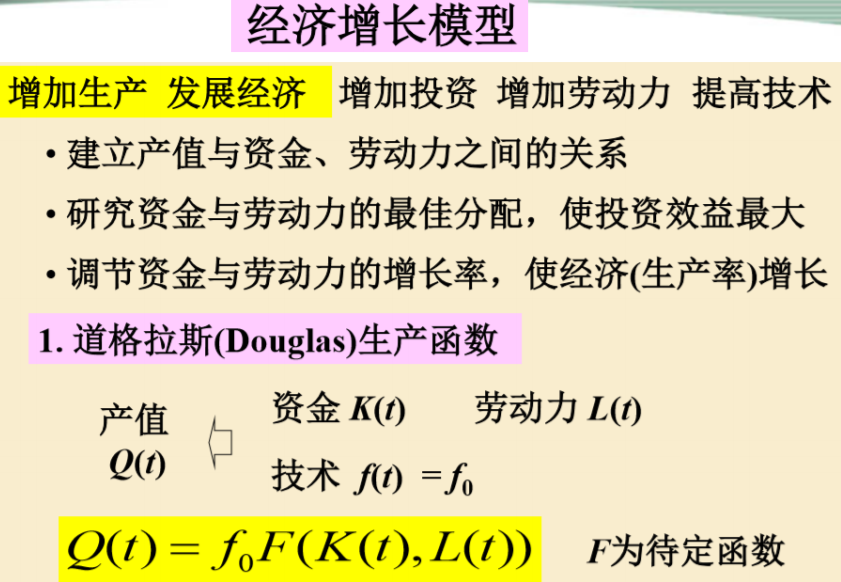 Q(t):以劳动力、资金为自变量的函数