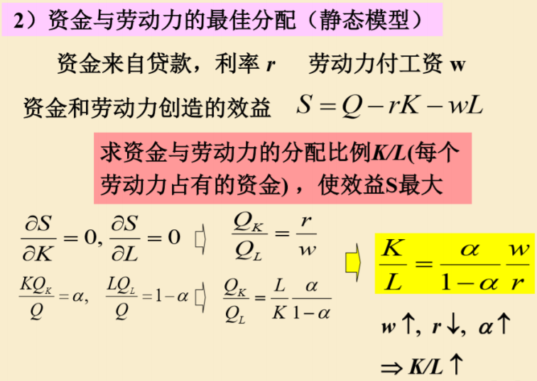 资金与劳动力的最佳分配(静态模型)