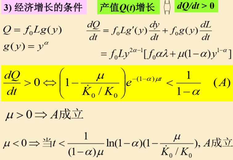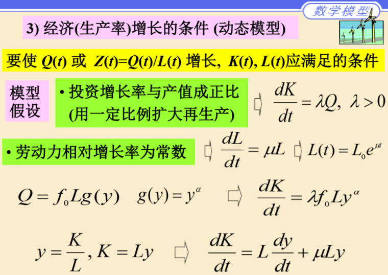 经济(生产率)增长的条件(动态模型)