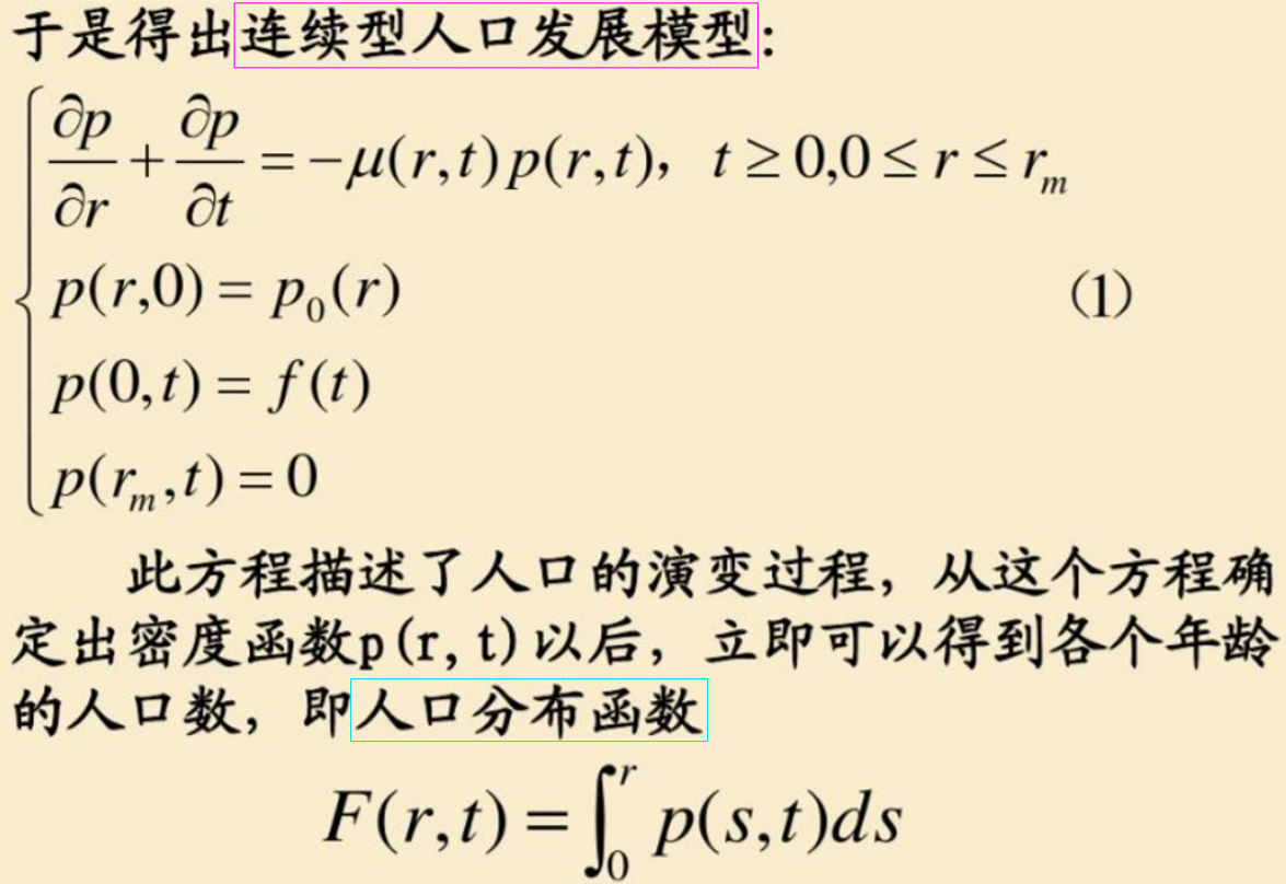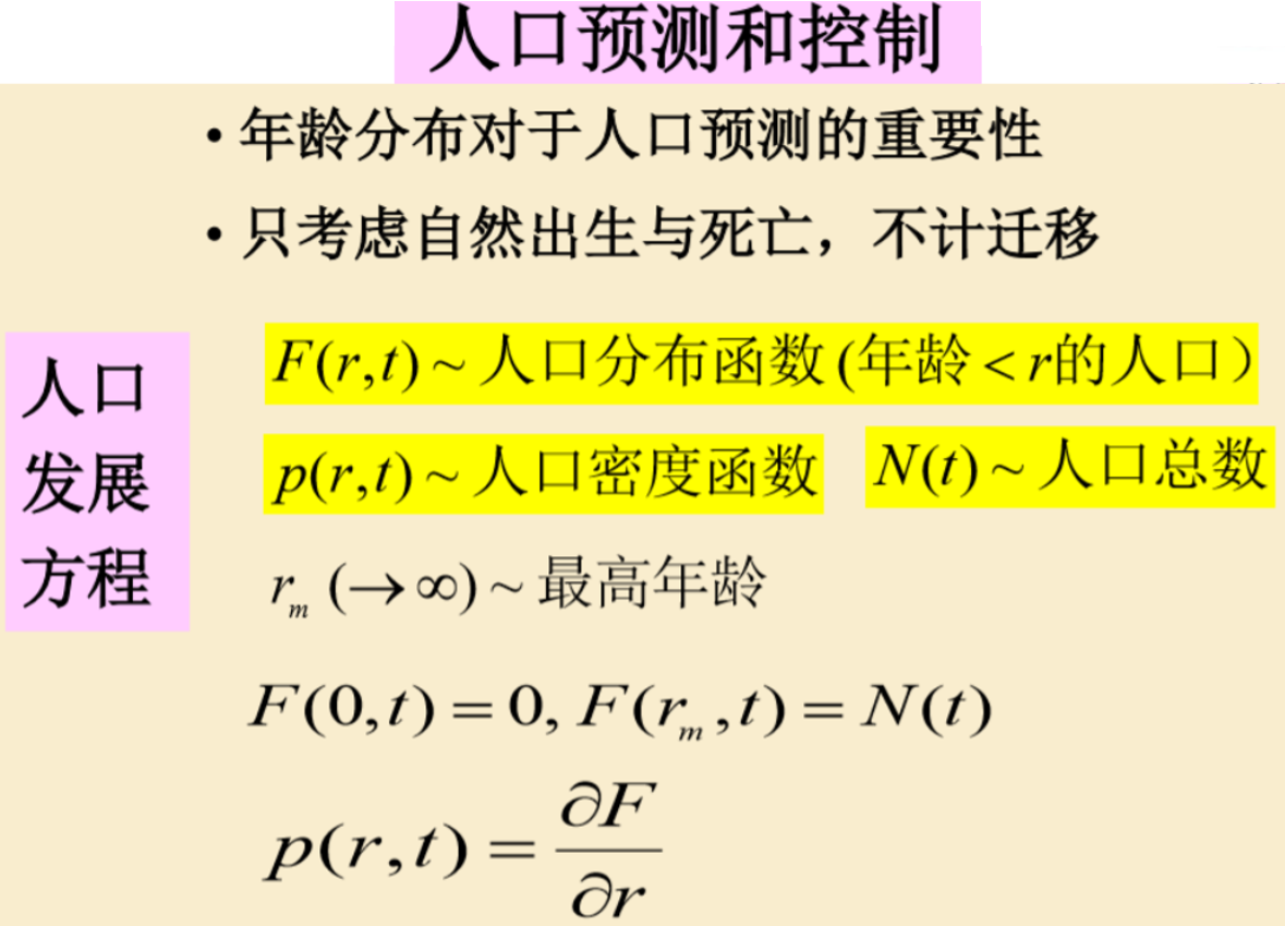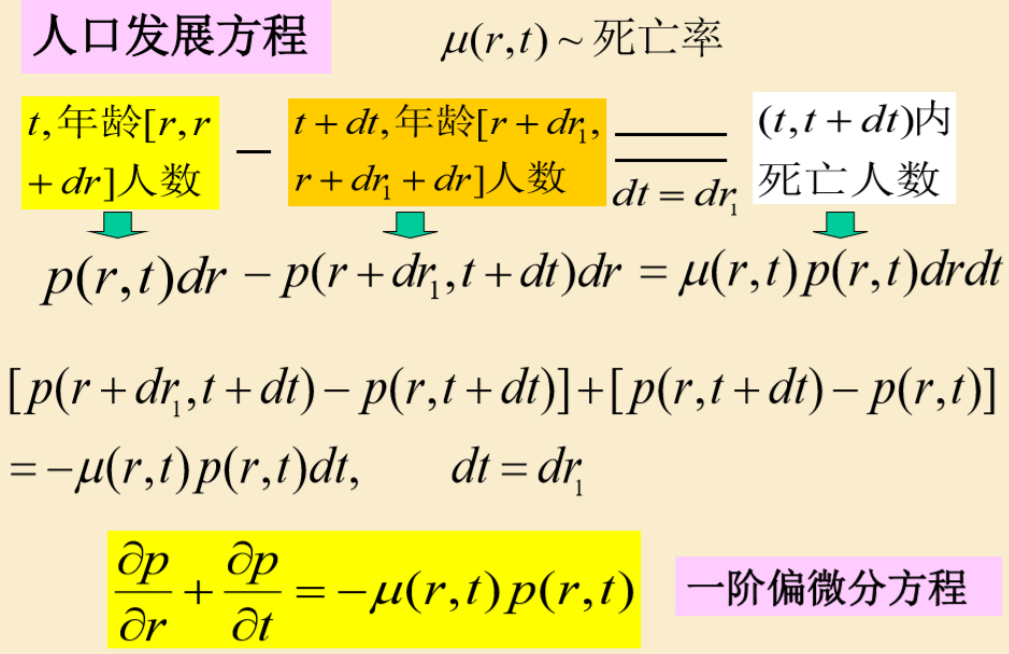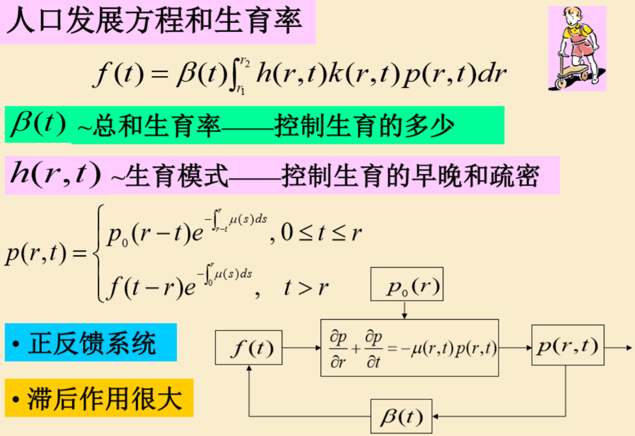 p(r, 0):人口小于r的人口密度; p(0, t) = f(t):在t时刻,未出生的人口密度为f(t)
