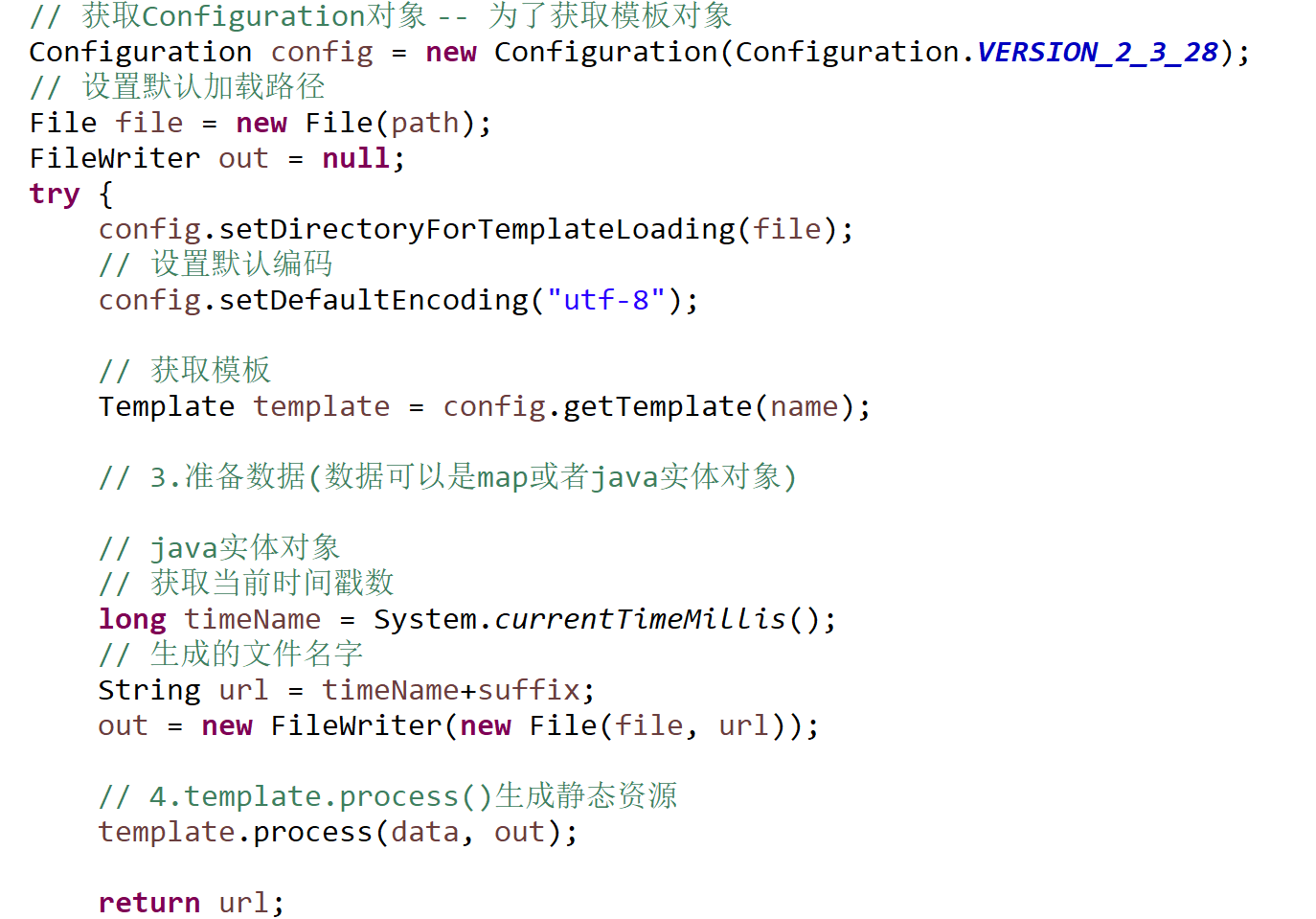 service层调用封装好的FreemarkerUtil工具类,填入4个参数