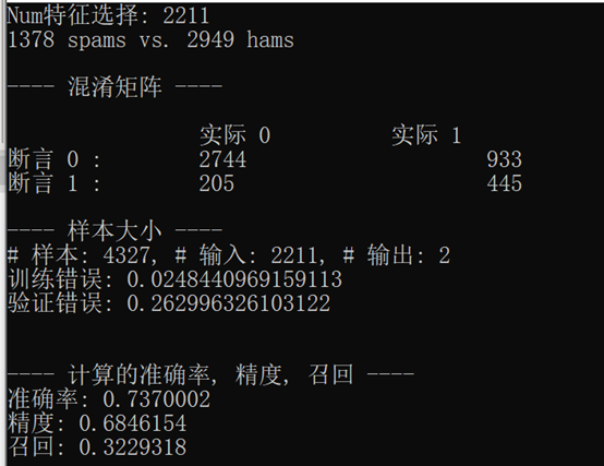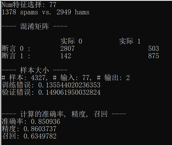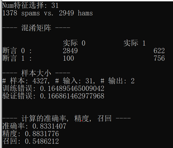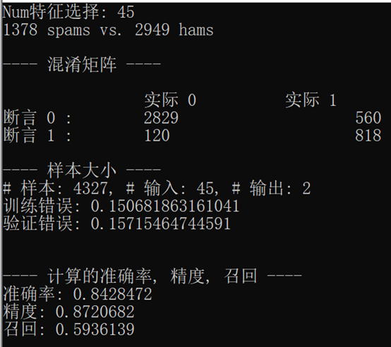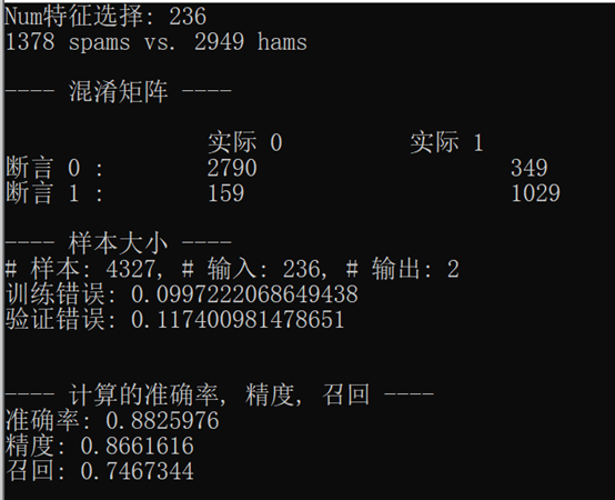从这段代码可以看出,我们在前一节中构建的Naive Bayes分类器模型至少使用了垃圾邮件中出现的所有单词。