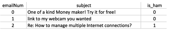 23 emailDF.AddColumn("is_ham", labelDF.GetColumnAt<String>(0));