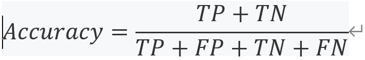2 float accuracy = (truePositive + trueNegative) / numberOfSamples;