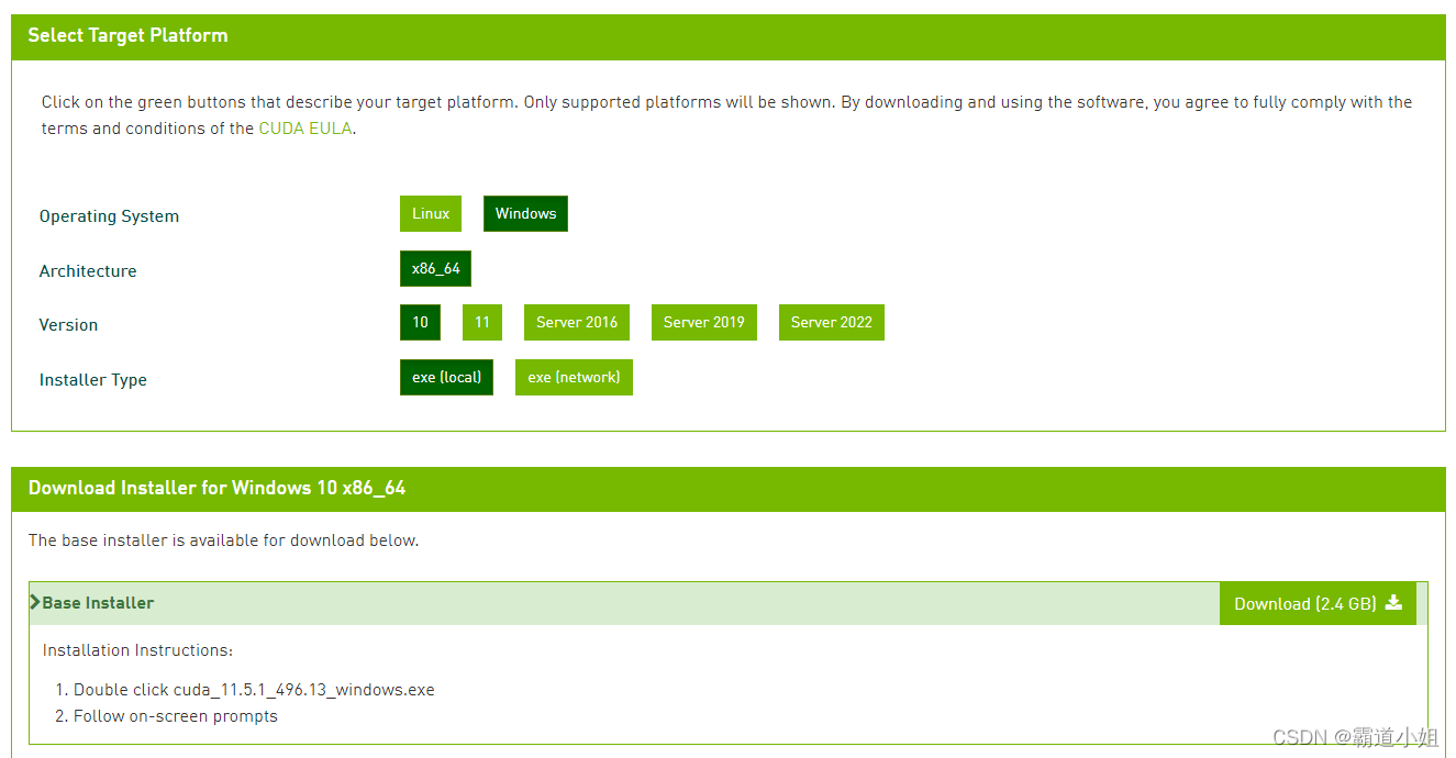 第二步:点击Windows,x86_64,10,exe(local),然后点击Download[2.4G],即可下载