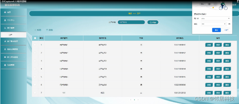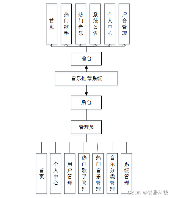 本课题要求实现一套音乐推荐系统,系统主要包括(管理员和用户)两个模块等功能。
