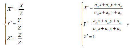 这是一个从二维空间变换到三维空间的转换,因为图像在二维平面,故除以Z, (X';Y';Z')表示图像上的点: