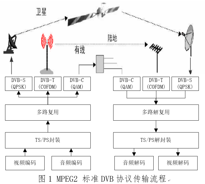 如上图,MPEG2标准DVB数据发送、传输、接收的流程。