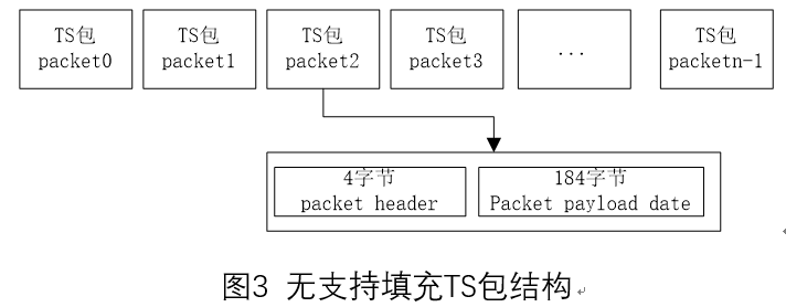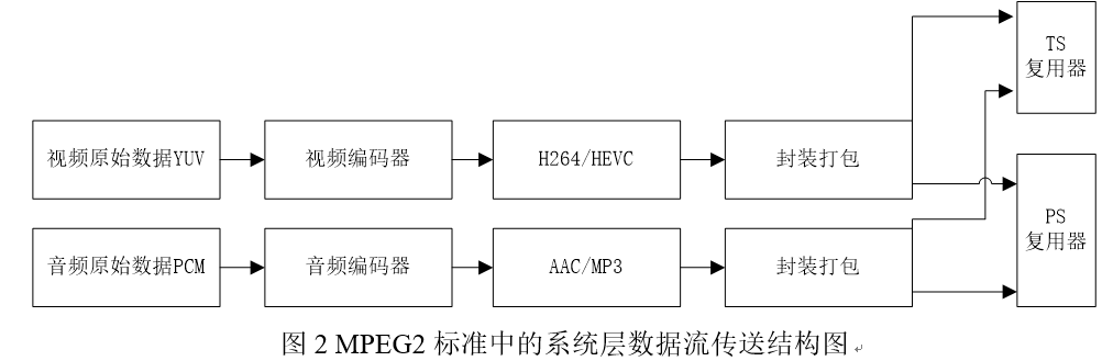 在MPEG-2标准中,有两种不同类型的码流输出到信道,一种是节目码流(PS:program stream),适合没有误差产生的媒体存储,比如,DVD等存储介质;另外一种是传输流(TS:Transport Stream),适用于有信道噪声产生的传输,可在网络中进行远距离的传送。这样的TS便于综合多路节目为单路节目进行复用。多个节目或者不必具有共同的时间基准。由于MPEG-2要求这些包由传送,则在MPEG-2 TS中传送包的大小定义为4*47B=188B长度。另外,这样的TS作为一个固定长度包大小,便于找到帧的起止位置,易于从包丢失中恢复,适合于有误码的环境,但是与PS相比难于生产与复用。