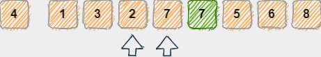 移动左指针,2比pivot小,再移动,发现7,7比pivot大,故把7放到右指针记录的位置,再次开始移动右指针。