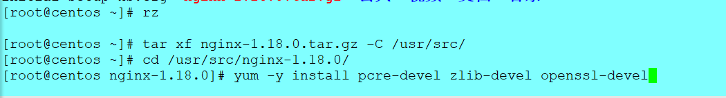 《4》:yum -y install pcre-devel zlib-devel openssl-devel 安装依赖包