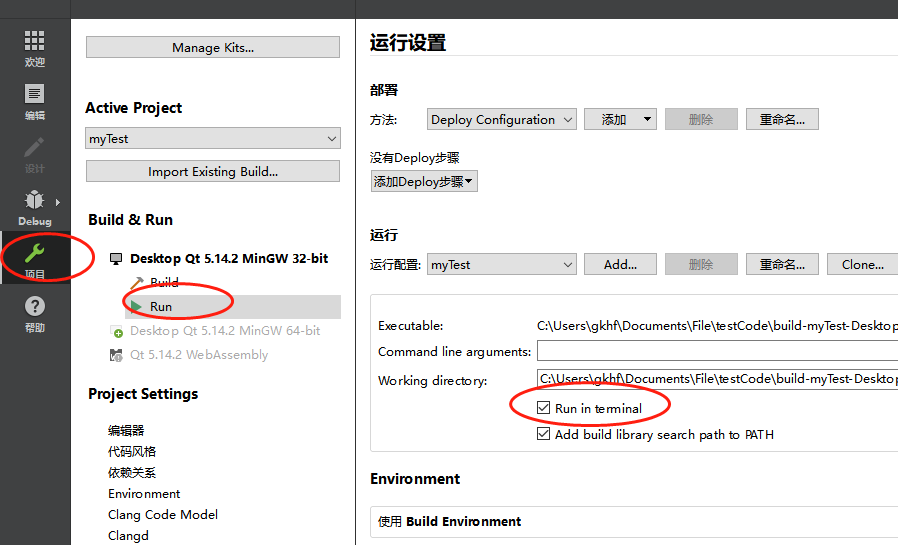 Ⅱ:配置项目运行设置,将Run in terminal 复选框打勾