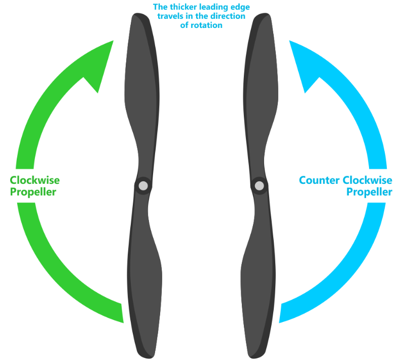 桨分为两种,识别正桨/反桨的方法是看桨的迎风面。把桨竖着放平在桌上(这里有两种放法,放下来以后桨面朝上凸的是对的),只看其上半部分,会发现有一侧是翘起来的,这一侧就是迎风面,也就是需要这一面切割空气来产生升力。上半部分翘起来的在左侧,就说明这个桨应该逆时针转,他就是正桨,对应安装在1号2号位置。上半部分翘起来的在右侧,就说明这个桨应该顺时针转,他就是反桨,对应安装在3号4号位置。
