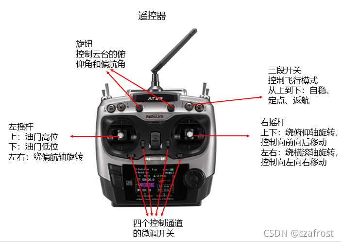上一步涉及遥控器校准,在那之前我们得知道遥控器怎么用。