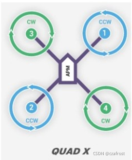 机头确定后,四个机臂也规定如下,右前方的为1号。