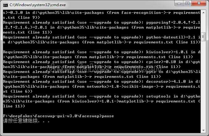 上一步我们已经配置好基础环境了,faceswap下载到本地之后,需要下载依赖库文件,才能运行。这一篇我们来安装依赖。(因为pip安装时,要连接国外的源,经常出现错误,所以我们不直接用python setup.py来配置库,上一步百度云分享的文件已经加了国内的源,这样安装起来速度很快,而且分步来可以知道哪一步有问题,可以成功安装好每一步后,再进行下一步。)