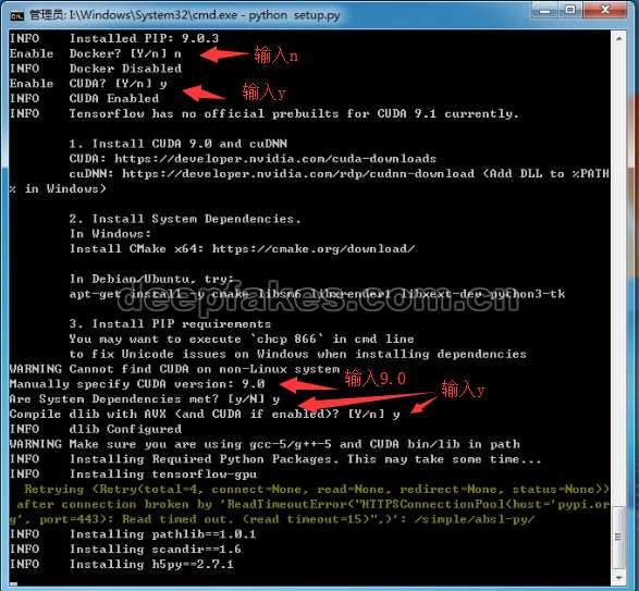 (注意:如果发现安装tensorflow太慢,也可以自己用国内的源安装,自行打开CMD, 在命令行输入