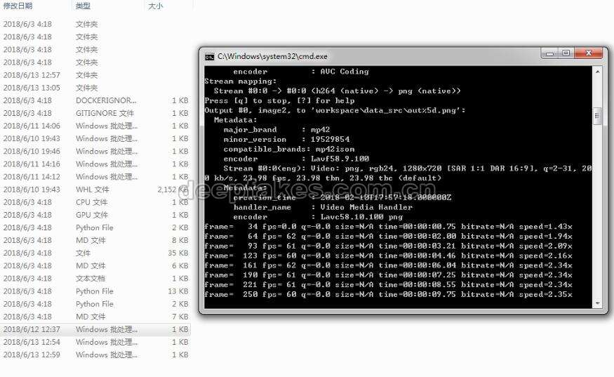 1. 返回到faceswap目录下的,双击x)分解src视频成图片.bat,可以看到命令行窗口在分解视频