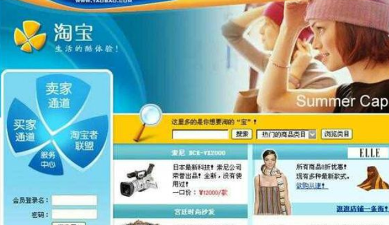 当然,很多文章都在强调,一个网站的发展水平,是逐渐的演变过来的,并不是一朝一夕的事情。虽然目前的情况互联网的泡沫越来越大,但是整个互联网技术的发展确实为我们提供了方便快捷的上网体验。下边是一张早期的淘宝官网的界面:
